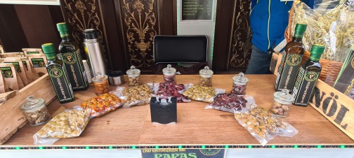 Zu unserem Sortiment gehören Olivenöl, Bergkräutertee, verschieden Sorten Oliven, Kräuter und Pflegeprodukte.